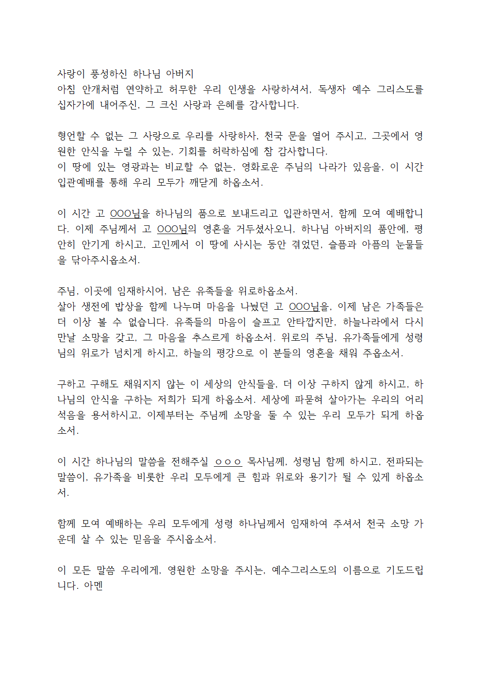입관예배 기도문 (2)