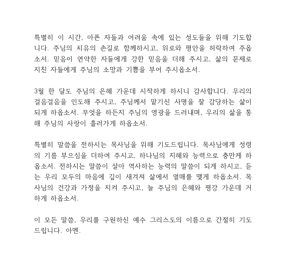 ※ 3월 첫째 주의 다음 기도문들을 참고해 보세요.