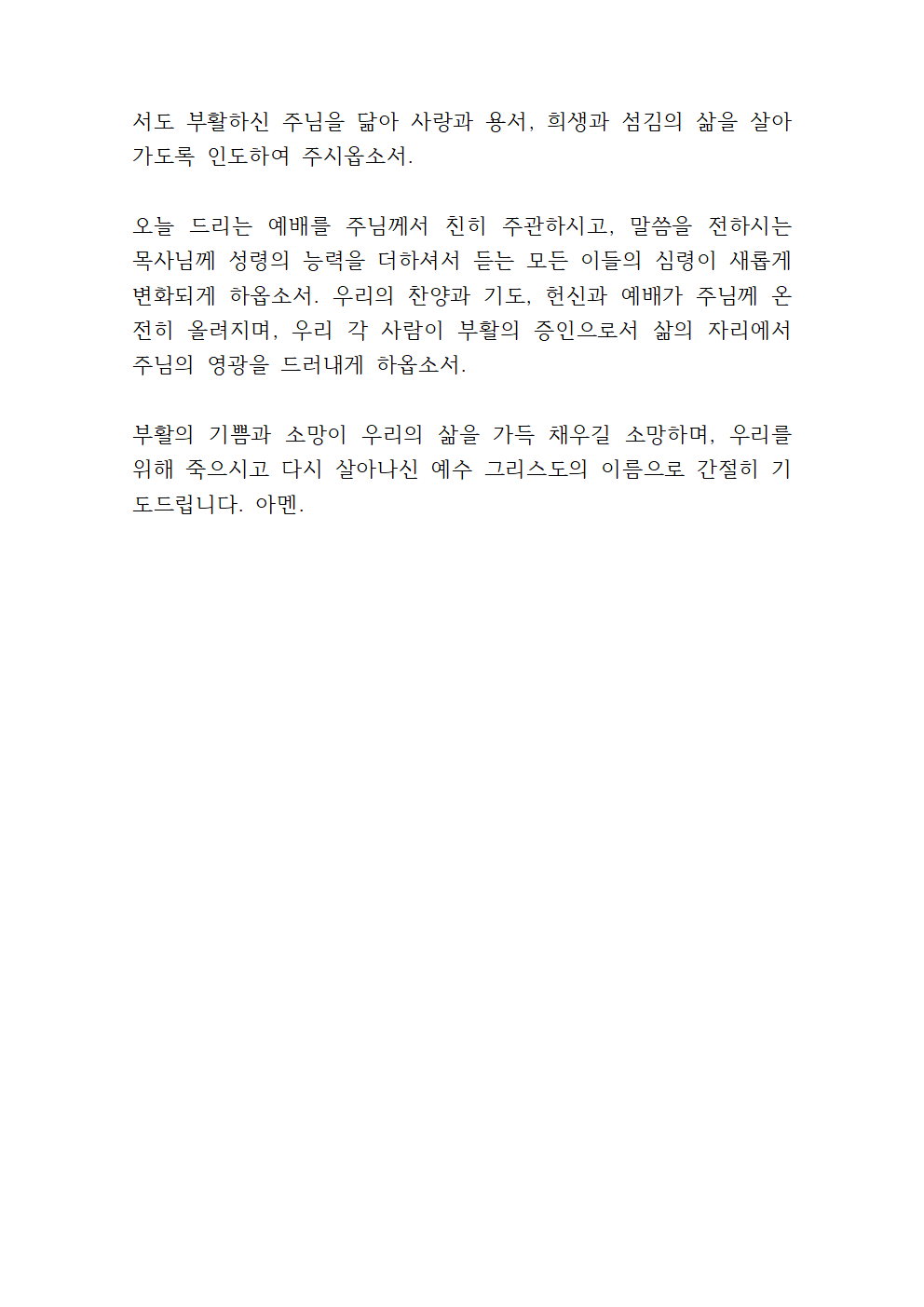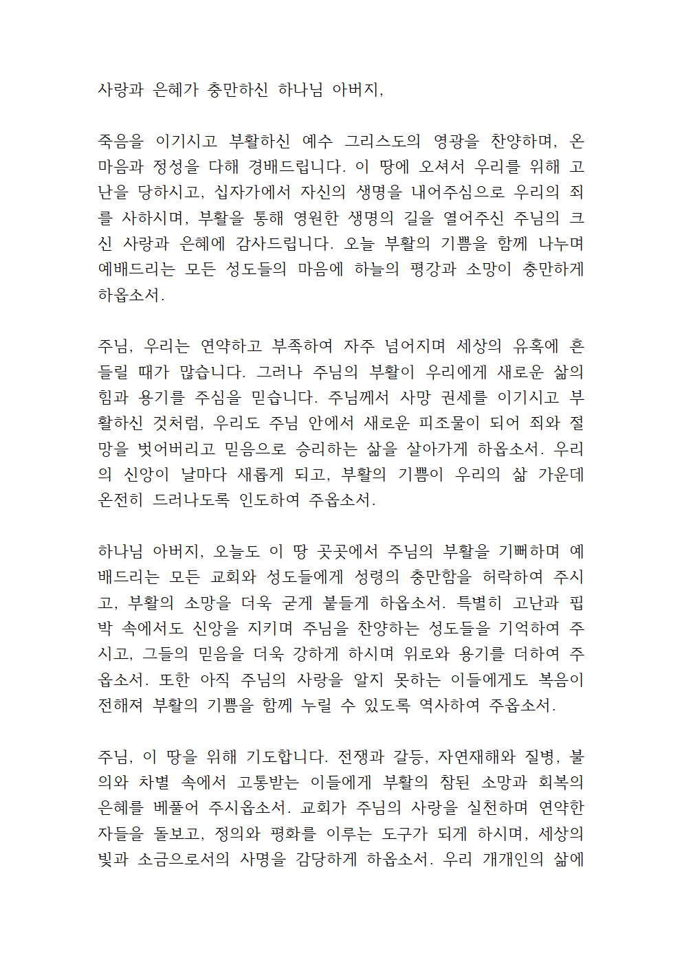 부활주일 대표기도문 내용
