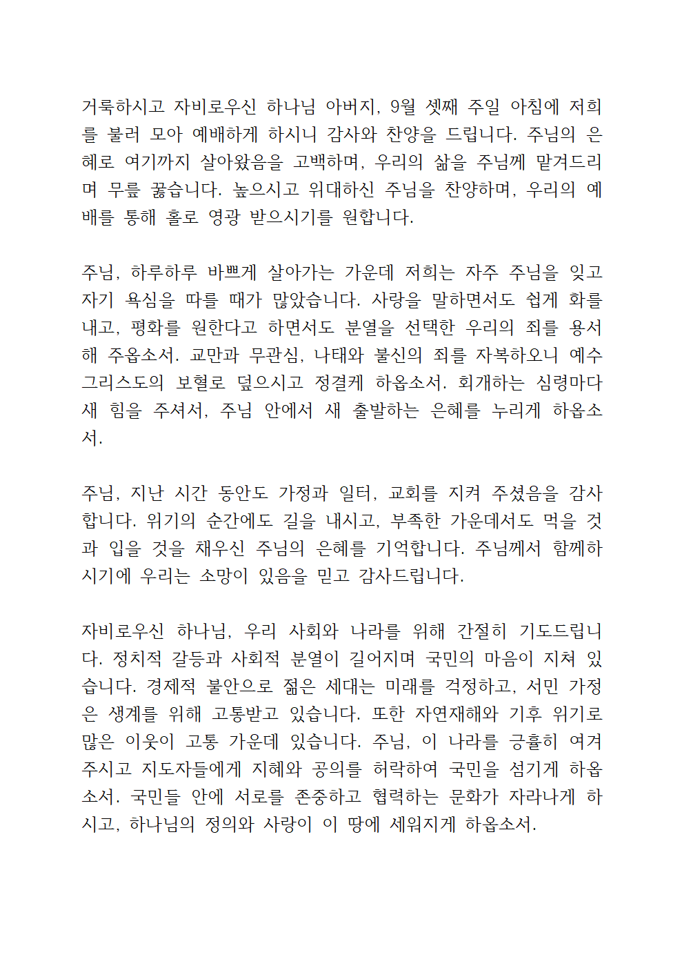 이번 글에서는 2025년 9월 2주 대표기도문을 안내해 드리겠습니다.