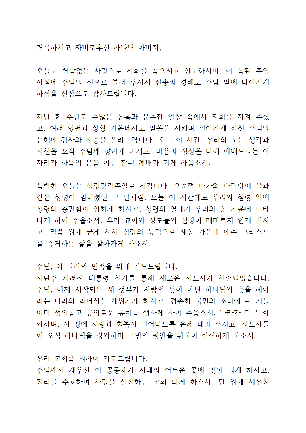 성령강림절 대표기도문