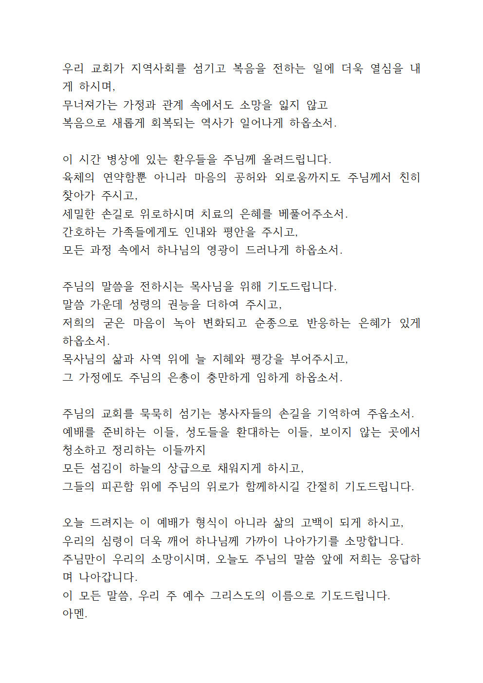 이 모든 말씀, 우리 주 예수 그리스도의 이름으로 기도드립니다.