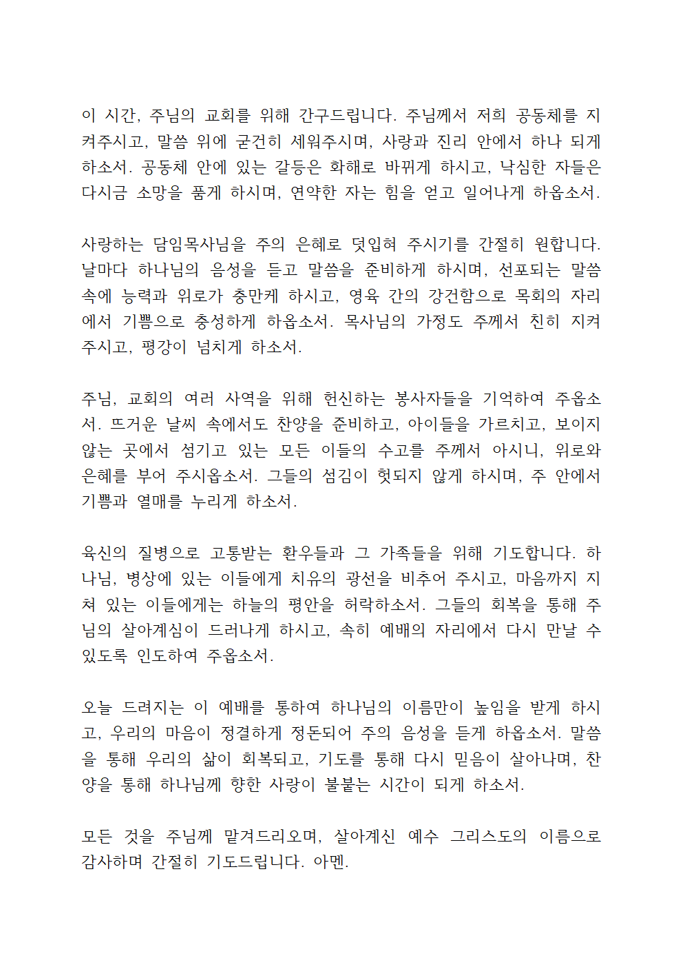 우리 주 예수 그리스도의 이름으로 기도드립니다.