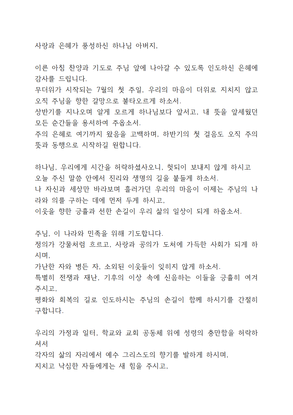 7월 주일예배 대표기도문 모음 Best 1